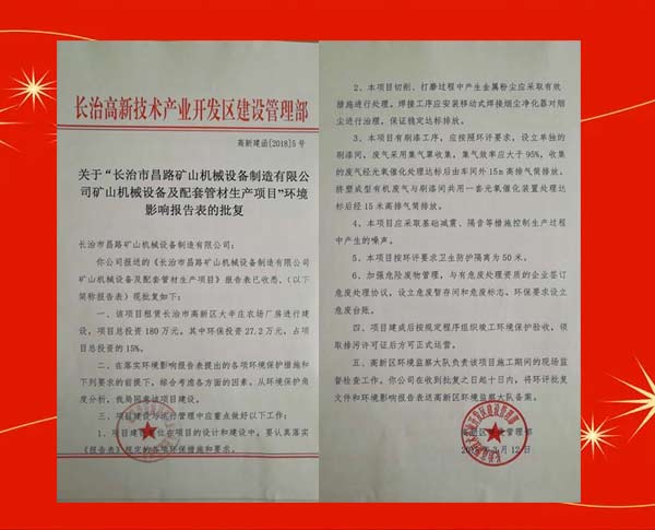榮獲長治高新區(qū)環(huán)境影響報(bào)告表的批復(fù)